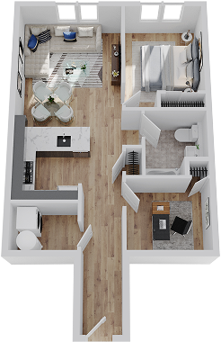 Step into the lobby and head up the elevator to your apartment. Airy. Spacious. Comfortable. Kick off your shoes, grab a drink, and exhale.